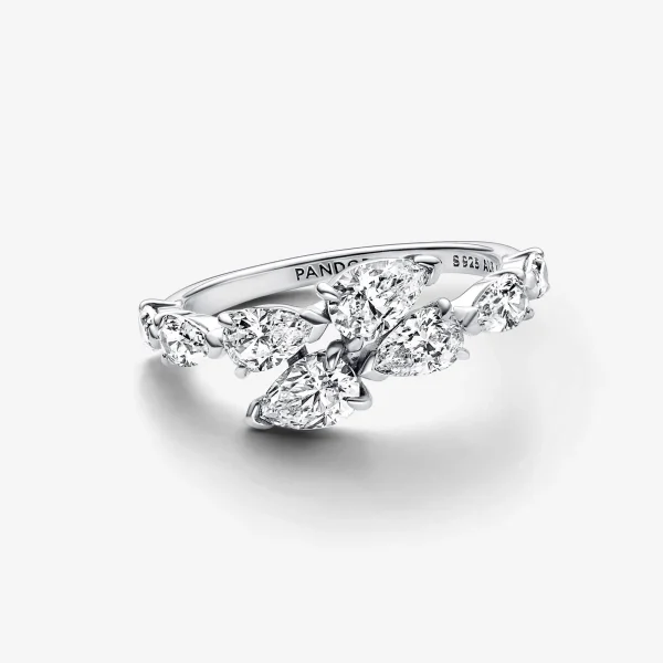 Dóna-li un toc de brillantor al teu estil amb l’Anell Banda Brillant Superposada de Pandora. Aquest anell de plata de primera llei es presenta amb quatre gemmes en forma de pera que se superposen als extrems. Els xatons en forma de V a la punta de cada gemma subratllen la seva forma de pera, mentre que els encastats en arpa a l’extrem més ample de la gemma la mantenen segura. Elegant, refinat i vistós, aquest anell asimètric ofereix un nou gir a un disseny atemporal i constitueix un impressionant afegit a qualsevol look.
