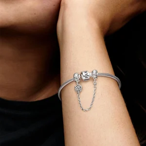 La Cadena de Seguretat Cors Enllaçats de Pandora és la peça perfecta per a aquelles que desitgen protegir els seus estimats charms amb estil i sofisticació. Aquesta versió renovada presenta baules rodones i cors de plata de primera llei polida, duplicant-se com a símbol d’amor. Amb aquesta cadena, podràs estar tranquil·la davant d’una obertura accidental del tancament de la polsera, evitant així la pèrdua dels teus preciats charms. A més, facilita el cordament de la polsera d’una manera més senzilla, afegint funcionalitat a la seva indiscutible elegància.