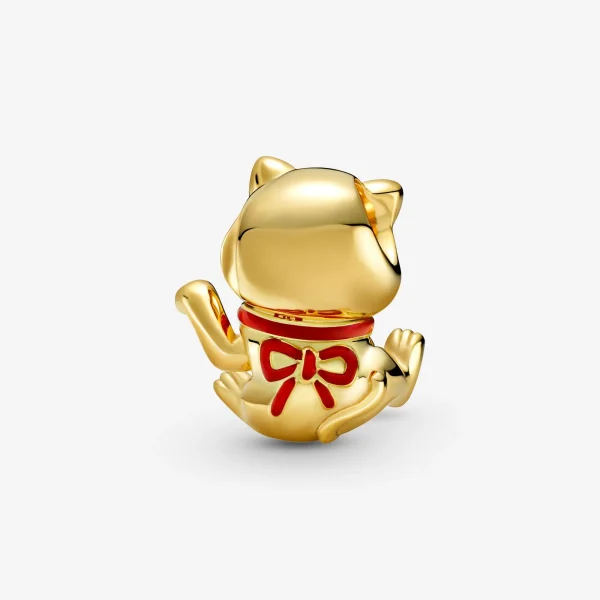 Aquest encantador Charm Lindo Gat de la Fortuna de Pandora és l’addició perfecta per atraure bones vibracions a la teva vida. El seu acabat meticulós i el recobriment d’or de 14 K el converteixen en una peça única. Inspirat en el Maneki Neko, un símbol de bona fortuna a la cultura xinesa i japonesa, aquest disseny presenta detalls d’esmalt en color vermell aplicat a mà a les orelles, la cara, les urpes, el collaret i el llaç del gat. Per dotar-lo d’encant afegit, s’ha embelleït amb la inscripció de l’ideograma xinès de ‘Fortuna’ en esmalt de color negre. Aquest charm és compatible amb altres símbols de bona sort de Pandora Moments, oferint-te la possibilitat de crear una combinació única que reflecteixi la teva personalitat i les teves aspiracions.