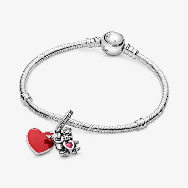 El penjant Minnie i Mickey amb Amor és una obra d’art en si mateixa. Els detalls delicats, com l’esmalt vermell brillant i les circonites cúbiques, donen vida a aquesta peça única. Amb una amplada de 11,6 mm, una alçada de 14,4 mm i una fondària de 7,1 mm, aquest charm destaca amb elegància en qualsevol combinació de joies Pandora.
