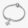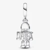 El Charm Penjoll Bot el Robot, en plata de llei, presenta un disseny meticulós i encantador. Amb esmalt de color blanc i negre, aquest amic de Pandora té braços i cames mòbils, dents quadrades i ulls rodons, tot aportant-li una personalitat única. La seva inscripció et recorda l’impacte positiu que les persones estimades tenen en la teva vida.