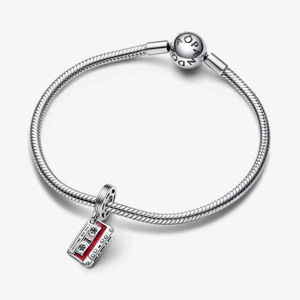 Aquest Charm Penjoll Cinta de Casset Guardians de la Galàxia de Marvel està construït amb plata de llei i esmalt, en colors negre i vermell. Compatible amb Pandora Moments, les seves dimensions són de 2,4 mm de fondària, 13,4 mm d’alçada i 7,7 mm d’amplada. Aquesta peça única et permet expressar la teva passió pels còmics i la música a través de la moda.