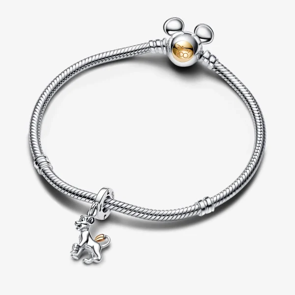 Deixa que la teva personalitat brilli amb el Charm Penjoll Simba 100 Aniversari de Disney, una meravella exclusiva de Pandora. Aquest encantador charm d’edició limitada presenta Simba del Rei Lleó de Disney en tota la seva glòria, representat en plata de primera llei i or massís de 14k. La seva divertida posa, amb una pota davantera descansant sobre un brillant diamant sintètic, captura la innocència de Simba com a cadell. A més, la part posterior del cap de Simba llueix el gravat “Disney100” per commemorar 100 anys de meravelles. Aquesta peça excepcional és el complement perfecte per a la teva col·lecció Pandora Moments.