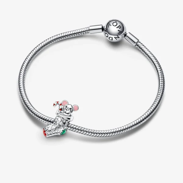 Ara et portem el Charm Ratolí i Mitjó de Pandora, una autèntica joia plena de màgia nadalenca. Aquest encantador charm està elaborat en plata de primera llei i captura la calidesa i l’alegria del matí de Nadal. El mitjó nadalenc presenta detalls de textura de punt molt realistes, mentre un simpàtic ratolí i un bastó de caramel traient el cap li donen un toc encantador. El ratolí, amb els seus adorables bigotis i potes, i l’esmalt rosa a l’interior de les orelles, aporta una nota de tendresa. El bastó de caramel i el mitjó estan esmaltats en colors nadalencs, donant-li un toc festiu. És la sorpresa perfecta per compartir amb els éssers estimats davant d’una acollidora xemeneia.