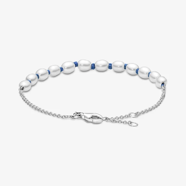 Atracció Celestial: Polsera Pandora Cordó Blau amb Perles Cultivades d’Aigua Dolça